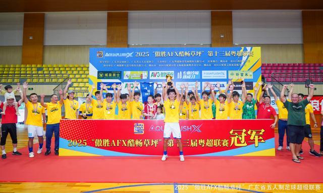记者王伟报道 8月24日下午,2025“傲胜AFX酷畅草坪”粤超联赛在三水白坭体育馆落下帷幕,顺德新青年队5比4战胜深圳碧波索格爱尚酒店公寓队,以新军身份夺得粤超联赛桂冠,深圳碧波收获亚军,傳骋恩祈FC队夺得季军。
