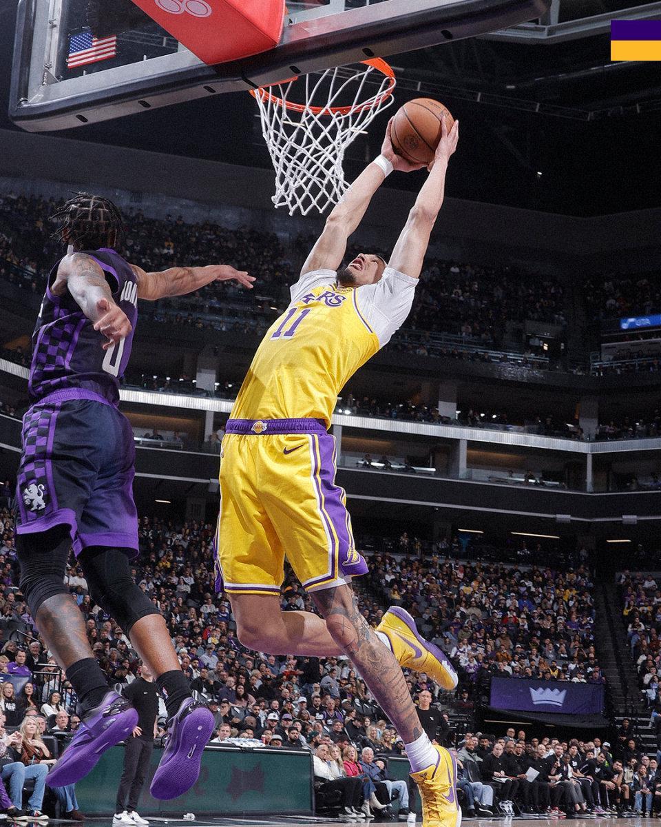 末节湖人连得7分后,在8分03秒追到95-102,国王请求暂停。暂停回来国王再次将分差拉开到两位数,艾顿和东契奇连拿6分,湖人104-112再次打停国王。国王一波连得10分,122-104终结了比赛悬念。最终全场比赛结束,国王124-112赢下胜利。